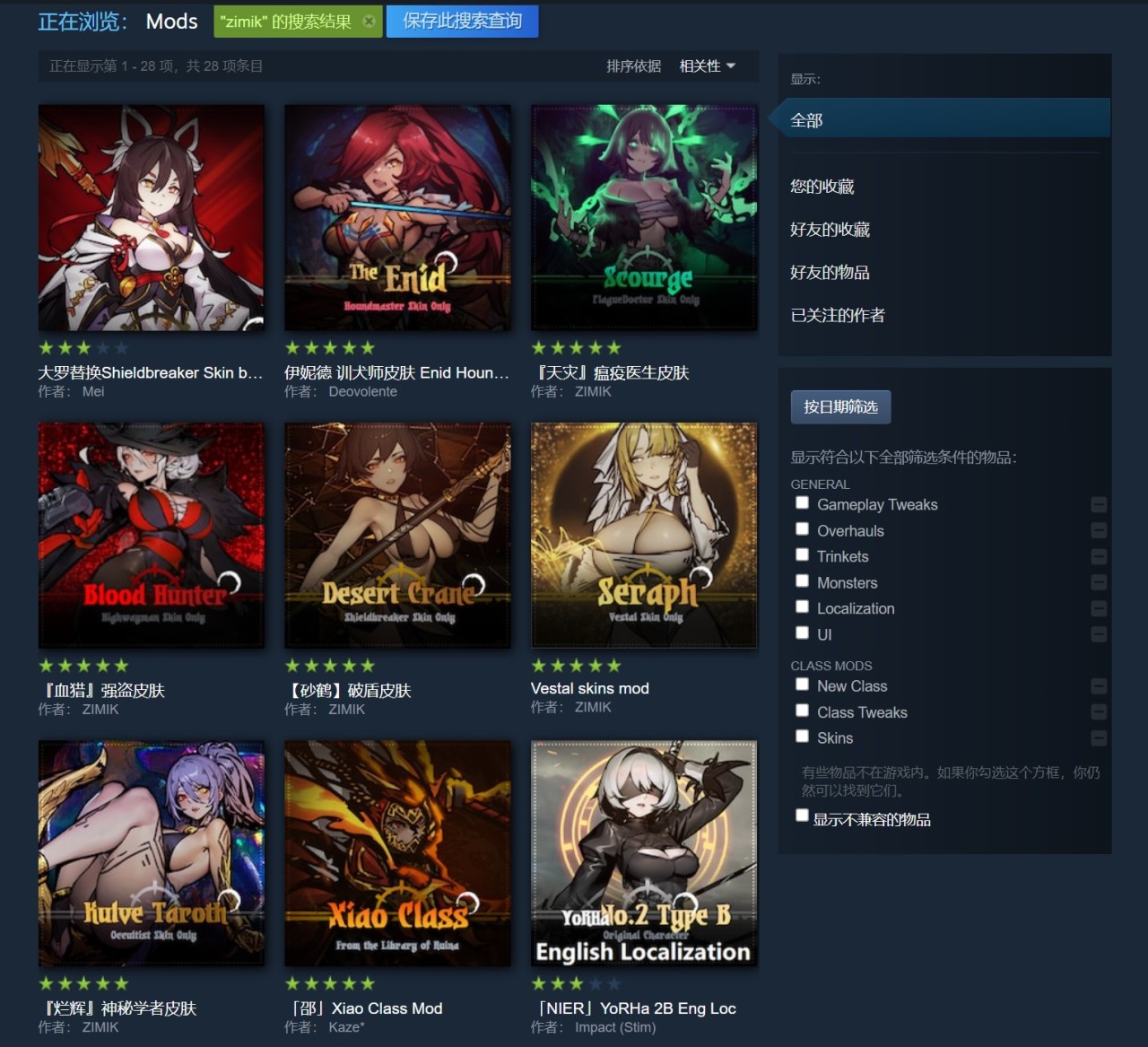 你在创意工坊搜索了“兹米克”、“阿纳泰林”和“卡兹”,几乎解决了你99%的英雄皮肤需求。